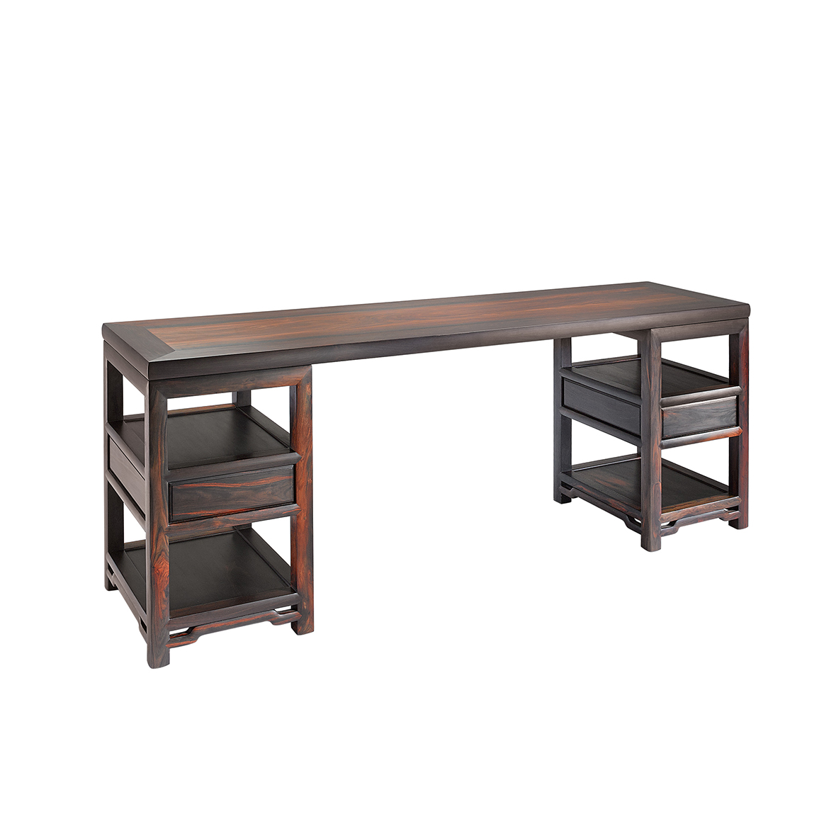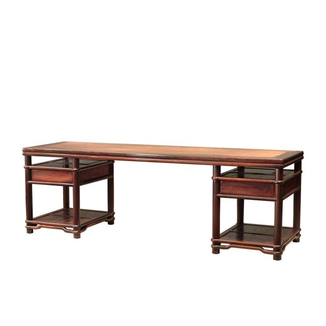 • 大红酸枝苏式嵌影木办公桌配官帽椅